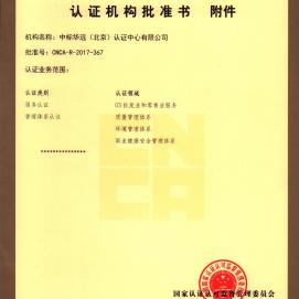 認(rèn)證機(jī)構(gòu)批準(zhǔn)書(附件)